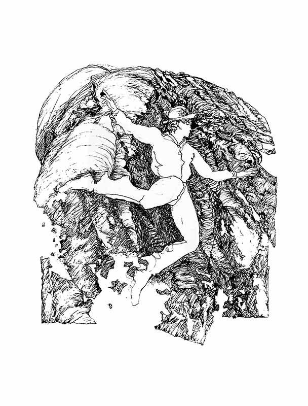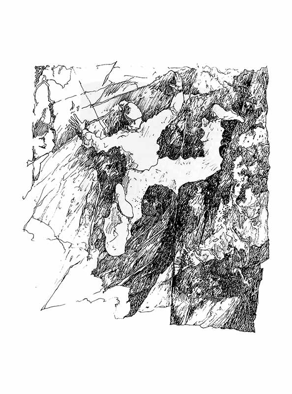 Once indoors, I produce more technical sketches that will be useful later outdoors, things that jolt my memory and fuel the mental projection that I’ll need among the rocks to bring my figures to life. But outdoors, in nature, I know that everything has to be organised according to precise phases if I am to trace the white chalk outline.