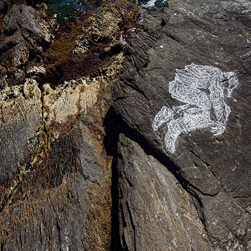 Sur les rochers je dessine toutes mes figures à la craie blanche, et à l’atelier je travaille à l’encre de Chine noire. Le sens de cette opposition trop évidente ne m’est apparu que progressivement au fil des années, et j’ai compris finalement que l’un nourrissait l’autre profondément. Passionné par les diptyques depuis mes premières expositions et face à deux pratiques aussi opposées, j’ai décidé un jour de ne pas choisir et d’organiser mon travail sur cet aller-retour, sans me sentir écartelé. Et pour moi, cette décision m’a libéré de façon durable, car elle m’a permis de donner forme à une recherche qui s’exprime entre plusieurs médias. Le seul point commun à ces pratiques successives reste le dessin.